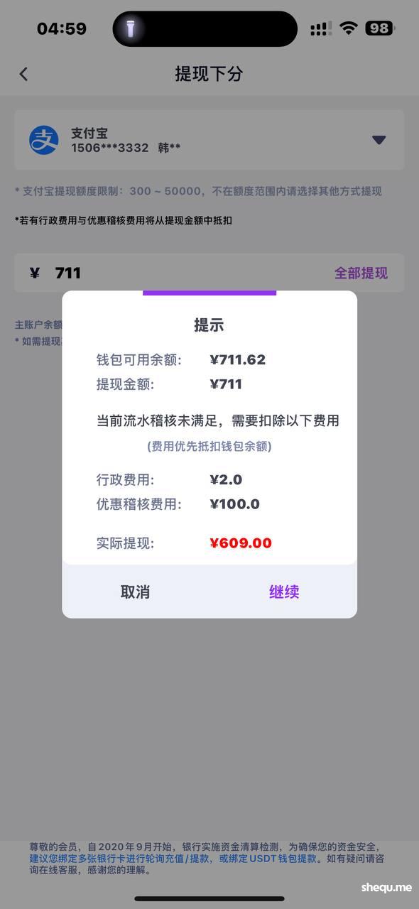 说是首存100+100一杯流水盈利588即可提现。我打到590提现显示差流水,客服说要盈利588,我又打到710提现还是不给出,各种理由不给出款,黑台大家避雷