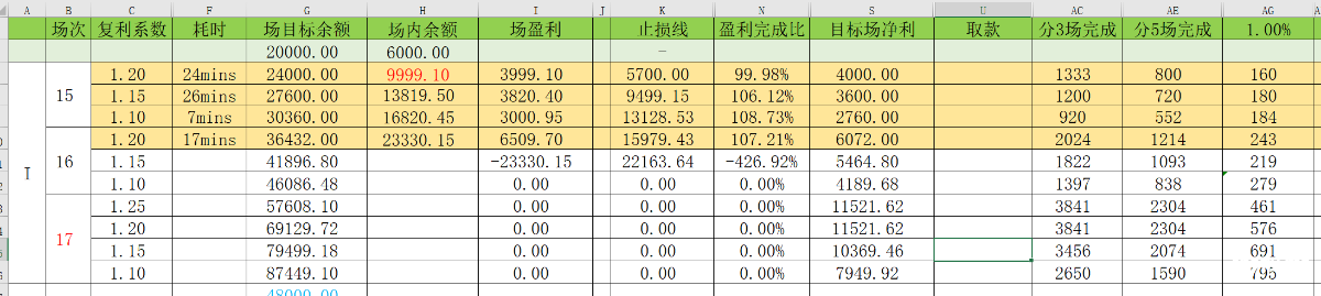本来是定的3万本金每天3场15%,今天因为本金没到,手上留着的不想动用太多,上了6000开打,但是目标的基数是2万,其实没影响(但是新手不建议用这种目标基数和手上筹码错位太多的情况来定计划)按照一天3场,20%、15%、10%来打,为什么是这种下降式的阶梯,也是从心态角度综合考虑定出来的,这样只有第一场是硬战,不管你用什么打法,第一个目标只要完成了,第二、第三个目标都是较前一场要有所下降的,盈利在,不会很快负追,我强调过很多次我的注码控制法就是想尽一切办法去避免负追,适当重注扩大战果,敢打敢下,真的如果盈利掉了很多,也要敢下重注去追。
